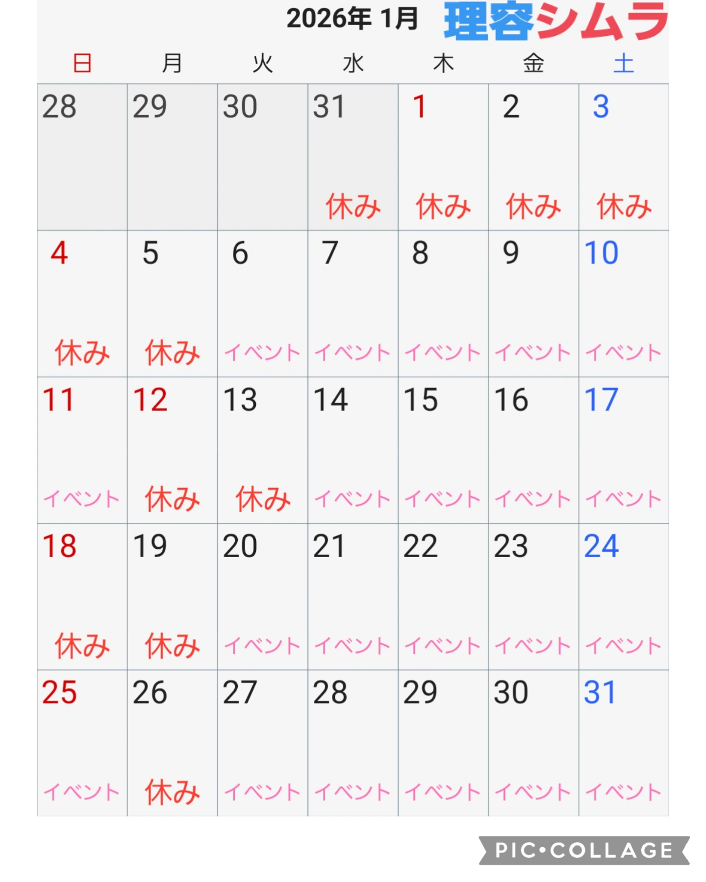4月の予定表✂️💈